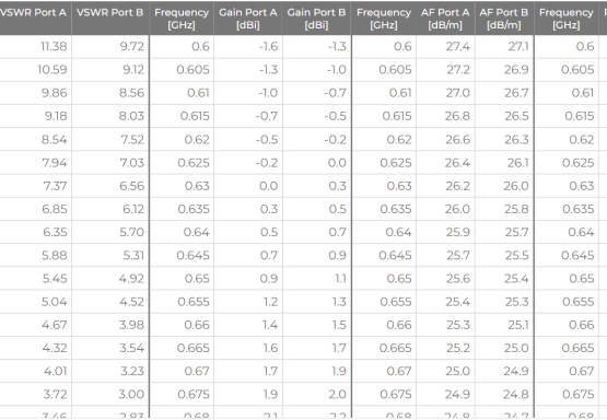 Every antenna undergoes calibration in our anechoic chamber, with measurement data instantly accessible through our Antenna Portal. Download XLS-formatted parameters for direct integration with your research tools – eliminating setup time and accelerating project milestones.