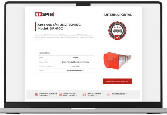 After purchase, get instant access to our RF SPIN Antenna Portal with calibration certificates and measured data for your exact unit. Serial-number-specific measurements you can reference in publications.